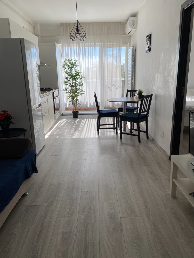 Bucătăria este complet echipată, baia modernă, iar facilitățile includ Wi-Fi rapid, TV smart, aparat de cafea și climatizare eficientă — tot ceea ce ai nevoie pentru o experiență comodă și lipsită de griji.